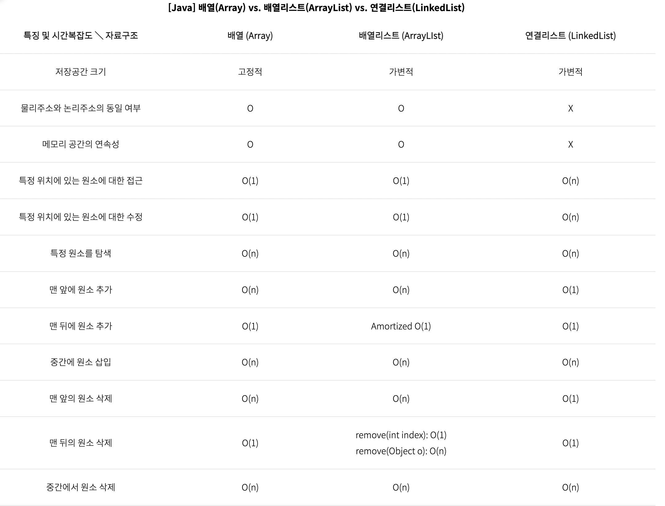 - 데이터의 추가 삭제에 비교적 메모리가 많이 소모된다.(한칸씩 당겨주거나 밀어줘야함, 더블링)