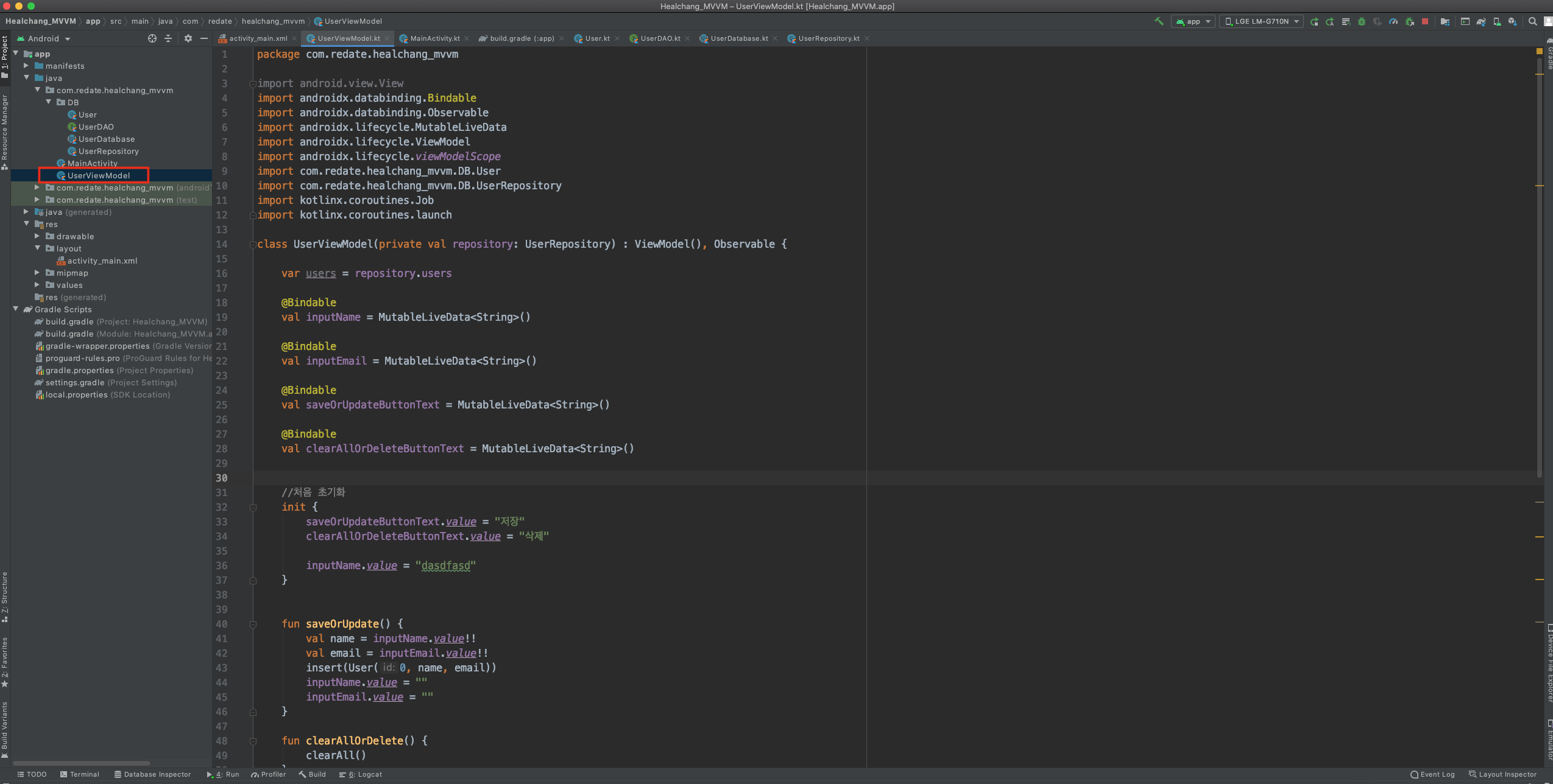 [Android, Room, Coroutinnes, DataBinding, LiveData, ViewModel ] 안드로이드 JetPack과 MVVM 패턴 사용해보기(5 - 3 : ViewModel을 만들어서 CRUD 해보기) 본문