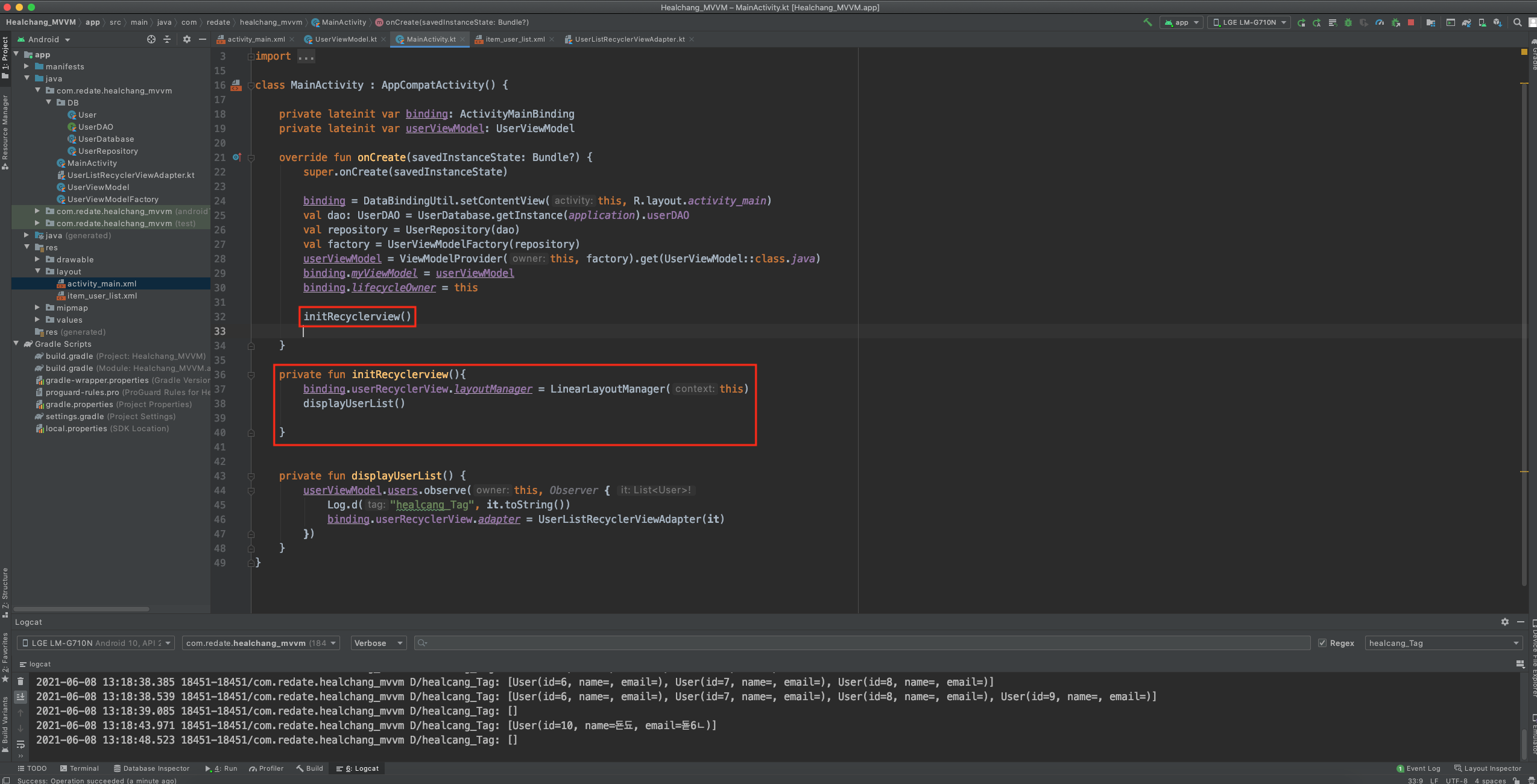 [Android, Room, Coroutinnes, DataBinding, LiveData, ViewModel ] 안드로이드 JetPack과 MVVM 패턴 사용해보기(5 - 4 : 리사이클러뷰를 이용해 리스트 보여주기) 본문