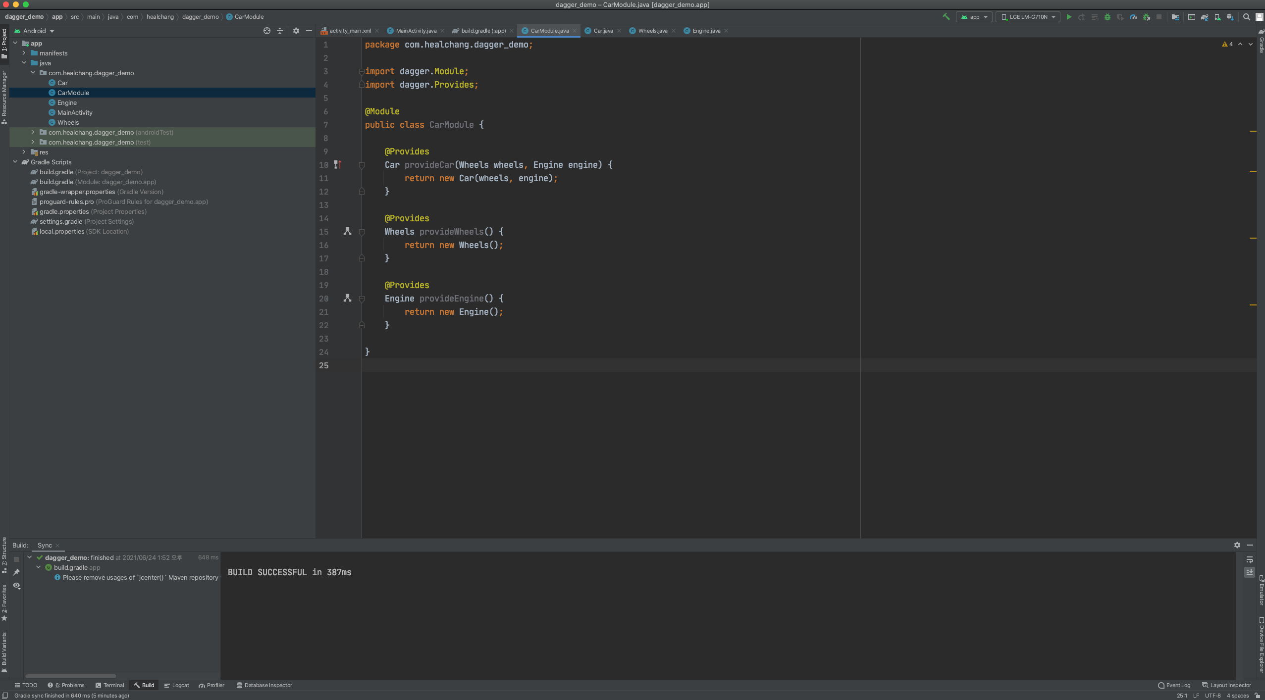 그래서 Dagger가 나왔습니다. 그럼 Dagger2를 사용해서 한번 만들어볼게요~